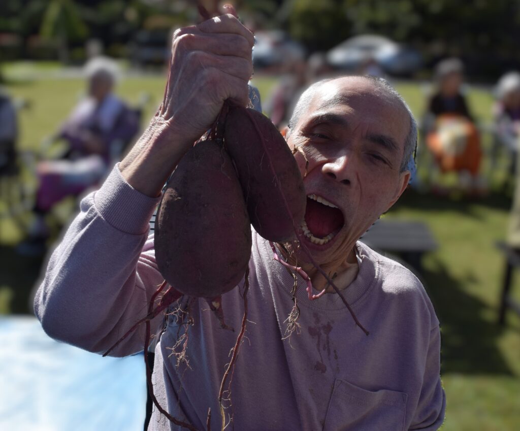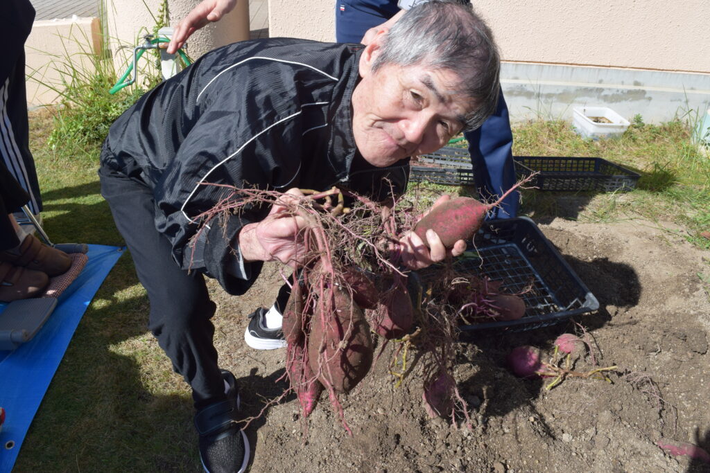 10月29日 芋堀りをしました。今年も豊作です。収穫したさつま芋はおやつ作りや食事に活用します。
